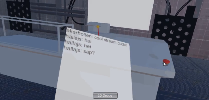 What we do have though is a twitch integration so that the user can interact with twitch chat while playing the game. (The user has to put his own credentials in system environments for twitch authentication, if not the chat will just be disabled) This twitch canvas can be toggled by a press on the controllers and is viewed on a canvas for the player.